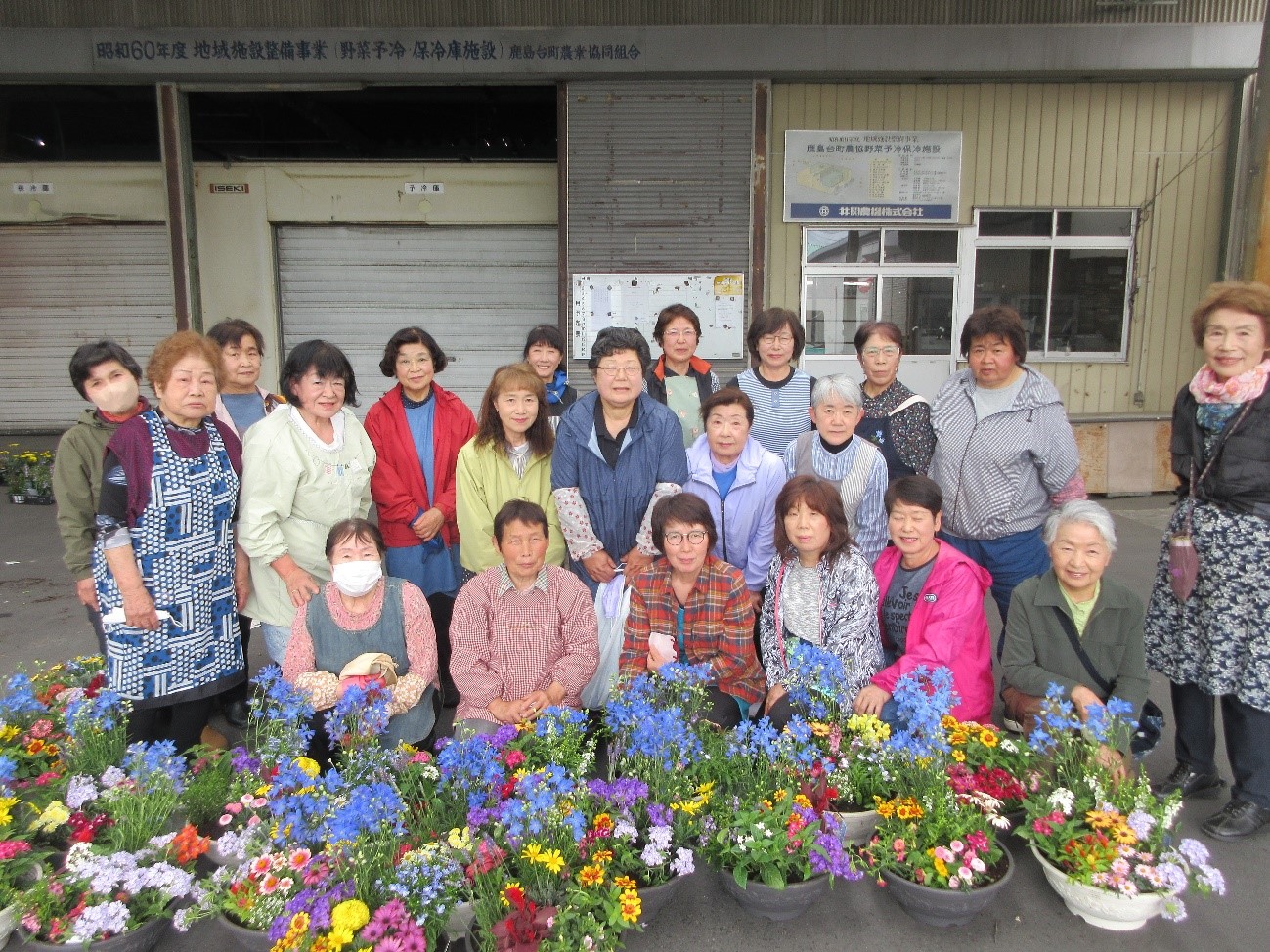 みどりの女性部鹿島台支部は5月26日、鹿島台営農センターで花の寄せ植え講習会を開き、部員21人が参加しました。