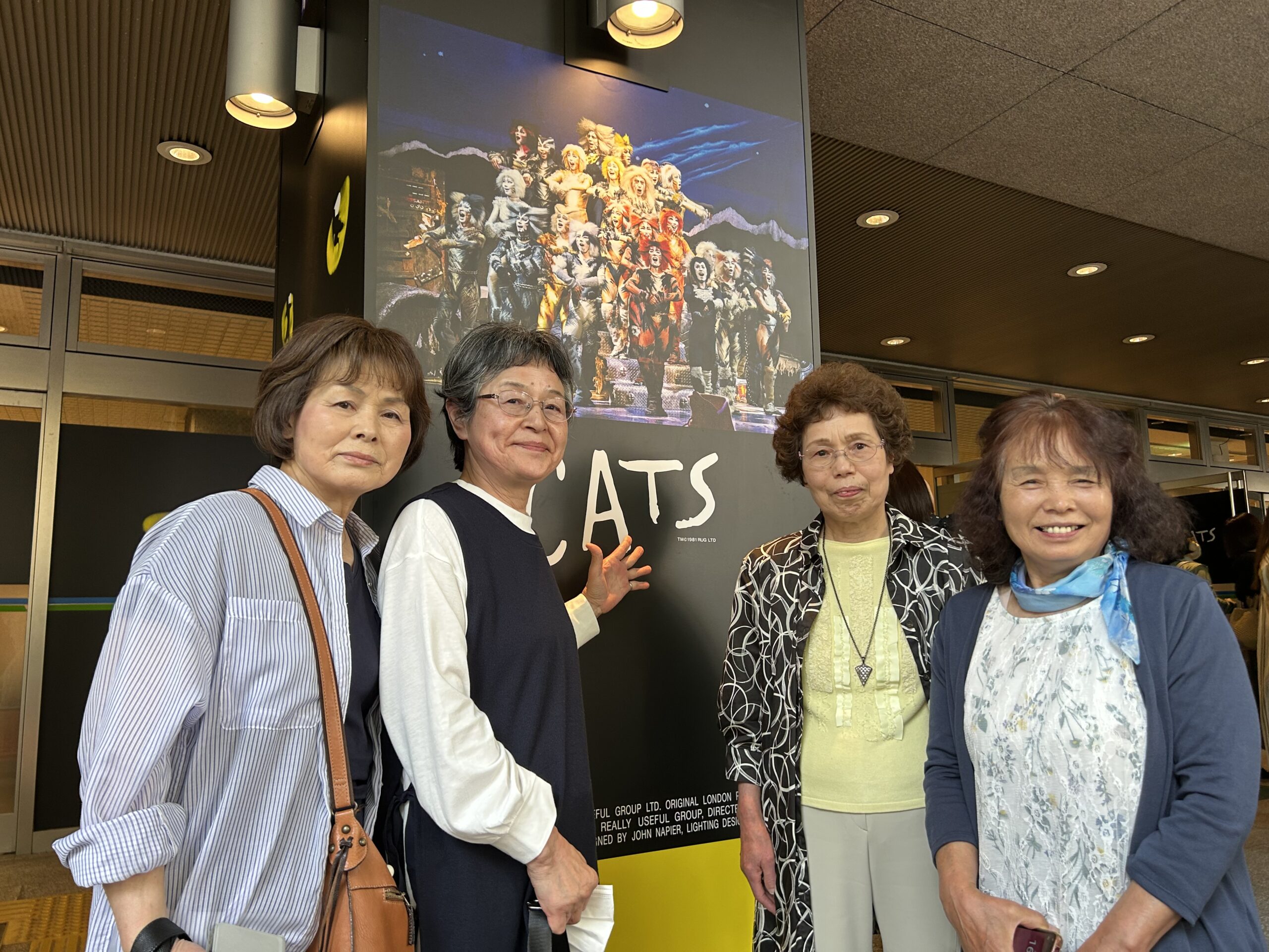 「キャッツ」の看板の前で笑顔を見せる参加者
