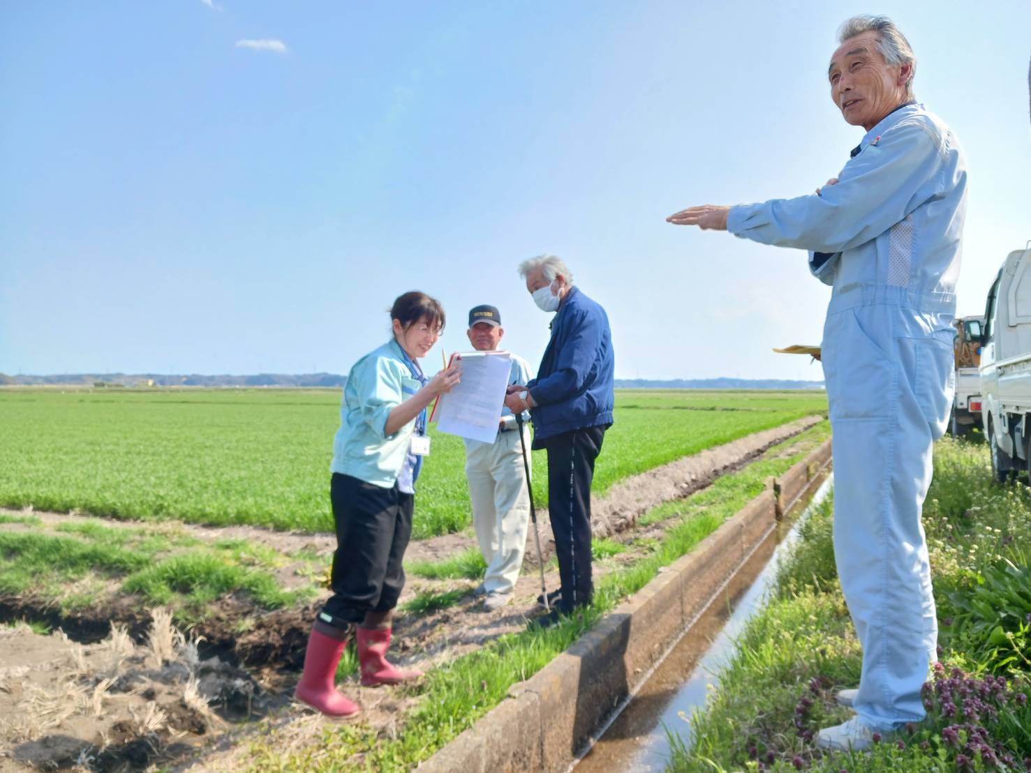 南郷営農センターは4月17日、令和7年産麦の品質と収量の向上を目指した現地検討会を開き、生産者や美里農業改良普及センター職員など19人が参加しました。