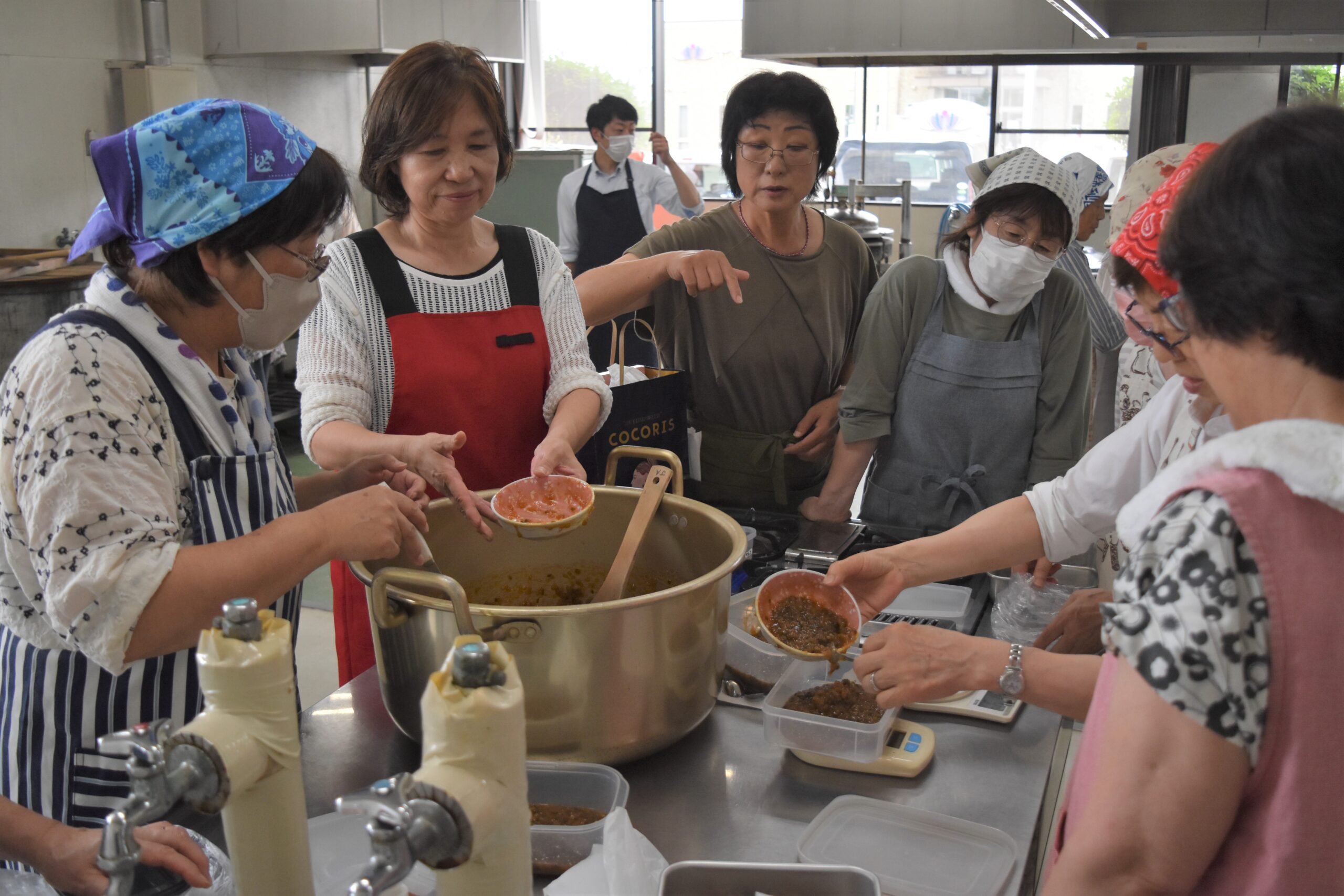 あさひな女性部大和インター支部は7月8日、あさひな統括事務所でピーマンみそ作りに挑戦しました。厚生産業(株)の瀬沼義貴さんを講師に迎え、参加部員26人は手際よくピーマンを刻み、前日に仕込んだしょう油と米こうじ、みりんなどの調味料と一緒に煮込んで作り上げました。 参加者は「和気あいあいと活動できて楽しかった」「家でも早速作ってみたい」「ピーマンみそで暑い夏を乗り越えたい」と話しました。