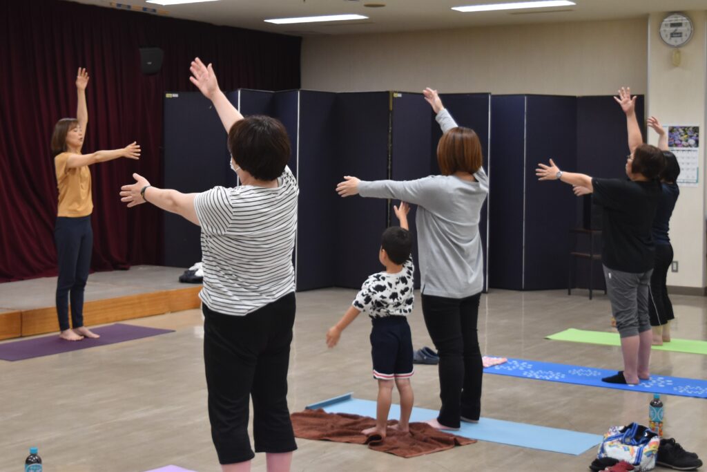 あさひなフレッシュミズ会大和支部は6月13日、あさひな統括事務所でヨガ教室を開き、会員7人とその子ども1人が参加しました。 ヨガインストラクターの小山理香さんを講師にヨガを体験。会員は小山さんとの会話も楽しみながら、体を動かしました。 参加した会員は「ヨガを体験した日はぐっすり眠れる。また参加したい」と笑顔を見せました。
