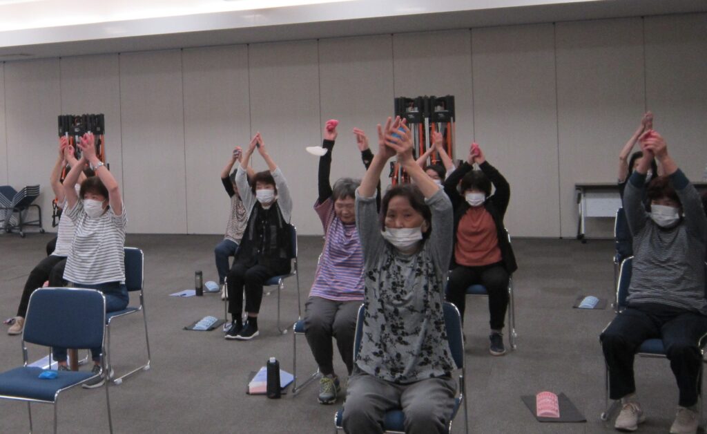 6月5日、みどりの統括事務所で開校式を開催。受講生22人が参加し、簡単な脳トレと筋トレを行いました。お手玉を使って簡単な運動やゲームをしたり、音楽に合わせて体操を行ったほか、筋力トレーニングマシン「ボディースパイダー」で心地よい汗を流し、楽しい時間を過ごしました。