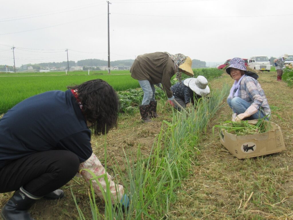 除草のほか、追肥とネギのうね上げを行い、野菜の成長を願いました。作業後には、㈱新みやぎサービスの会館で月例会を開き、事業内容について協議しました。