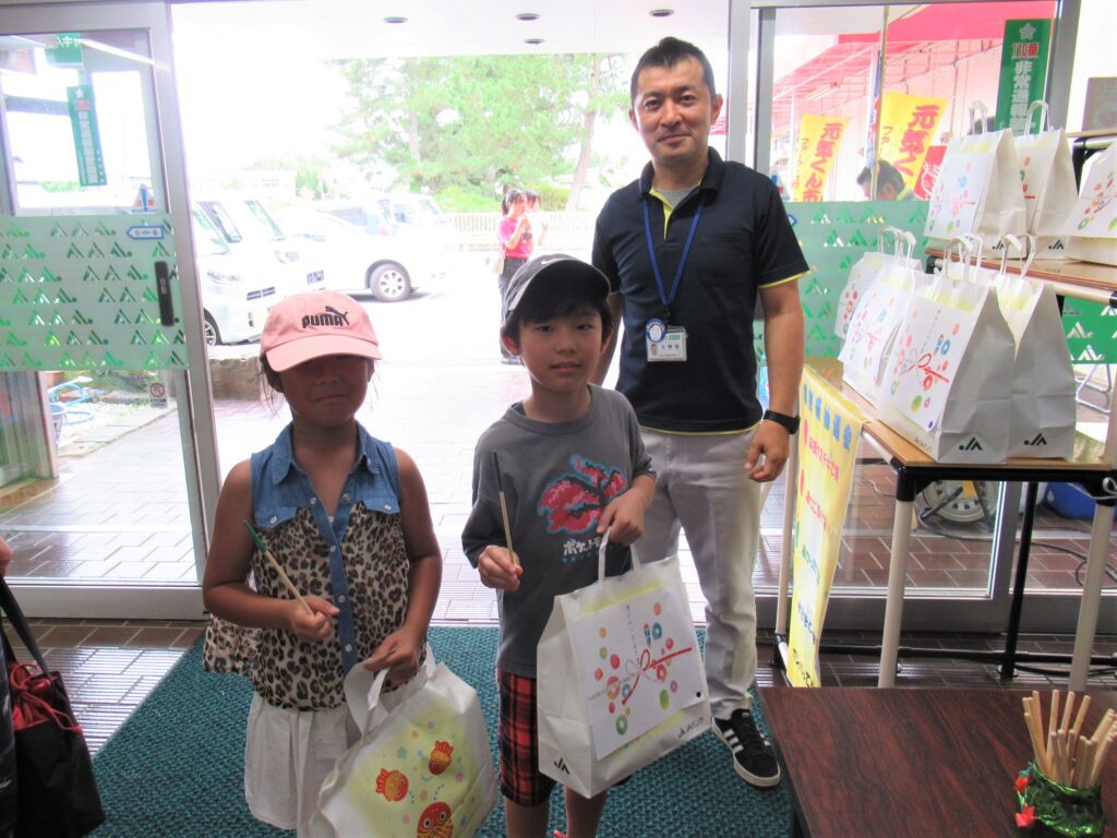 南郷支店は8月15日、年金支給日にあわせてお客様感謝祭を開催しました。日頃から同支店や元気くんマーケットをご利用いただいている組合員や地域住民に感謝の気持ちを込めて「空くじなしの抽選会」「かき氷」「水ヨーヨー」をプレゼントしました。 景品を受け取った来店者は「空くじなしはうれしい。開封するのが楽しみ」と笑顔を見せました。