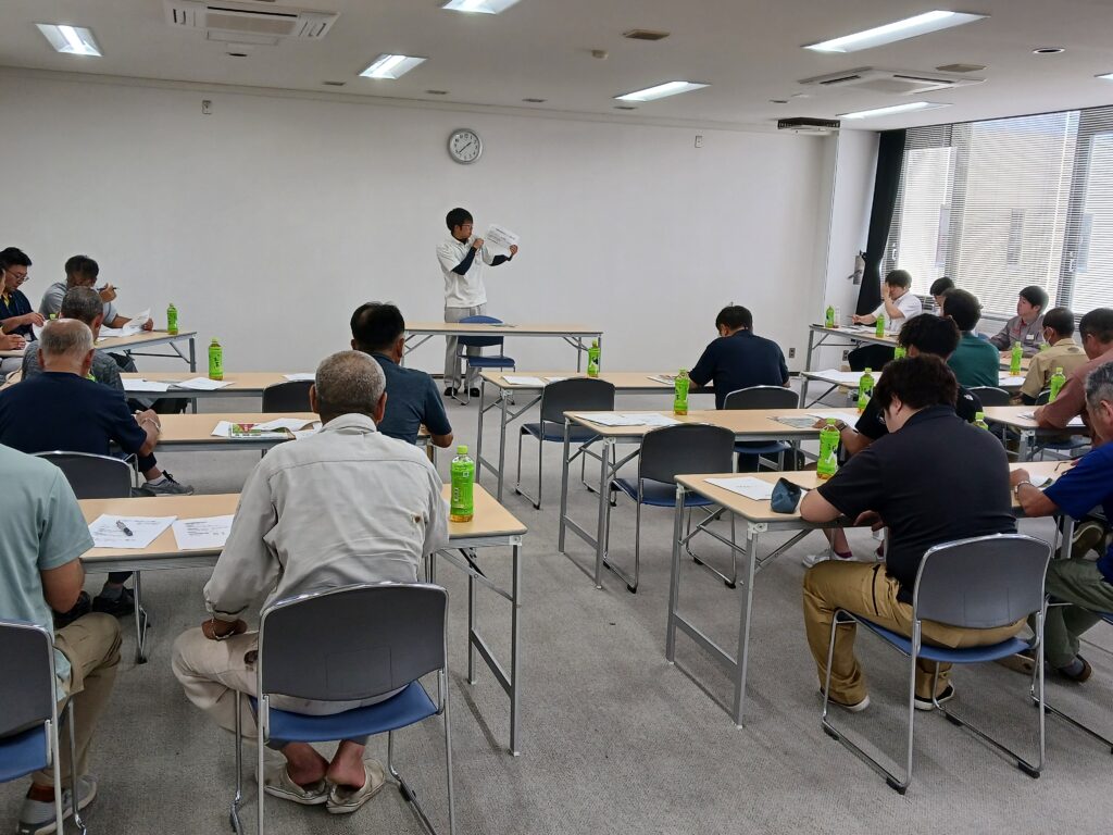 実施に先駆け7月18日、田尻支店で関係者22人が防除の流れや注意点を確認しました。