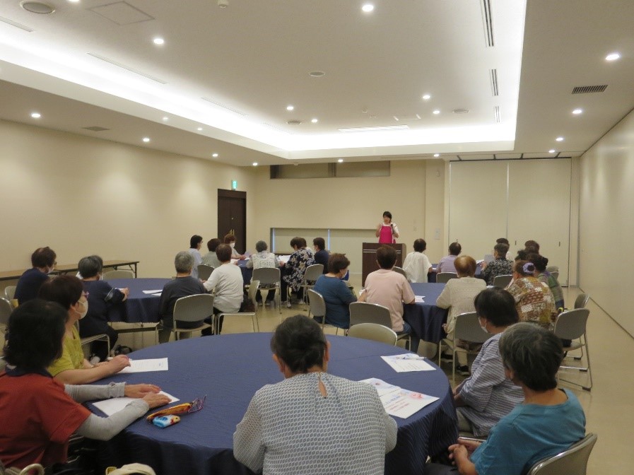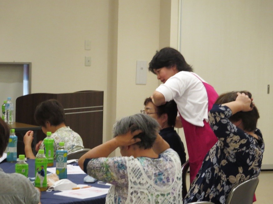 ヘルプふれ愛グループ協議会は8月22日、みどりの会館(美里町)で「健康と若さを引き出すヘッドマッサージ・口元トレーニング」講座を開き、会員33人が参加しました。