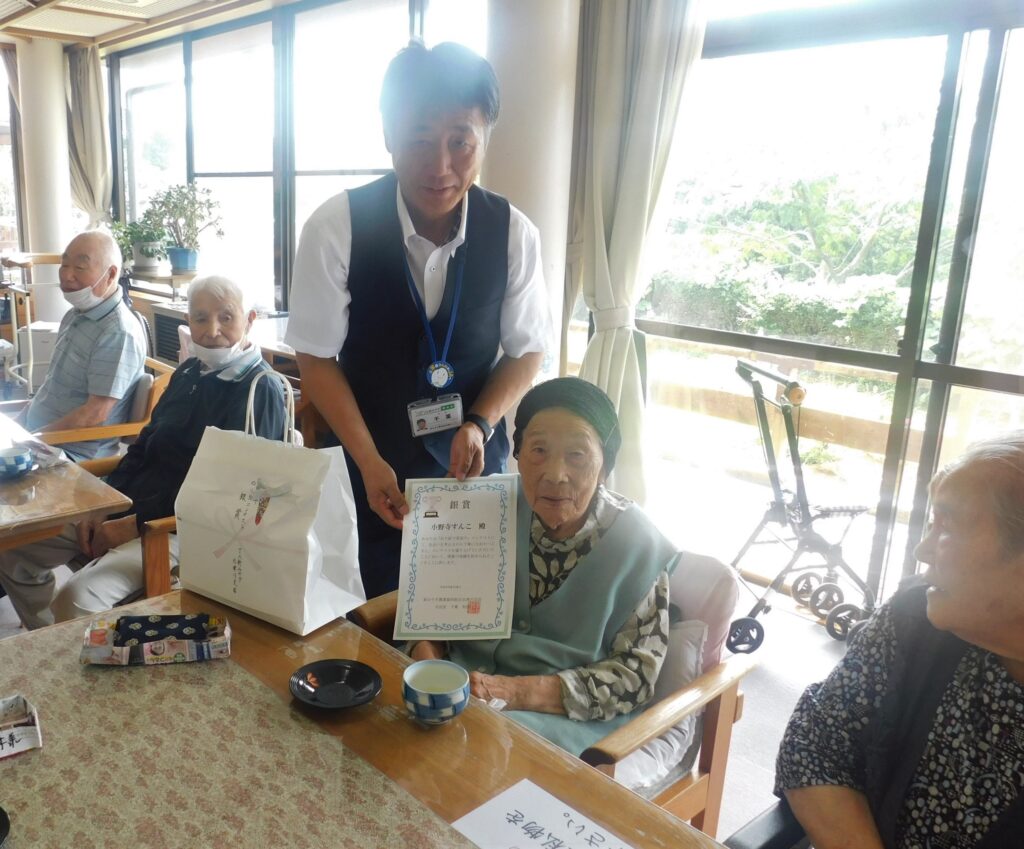 8月29日、3施設を訪問し入賞者に賞状と景品(「だて正夢」、「ひとめぼれ」)を手渡しました。受賞者は「思いがけず、入賞してうれしい」「集中してぬり絵をするのがとても楽しかった」と笑顔で話しました。