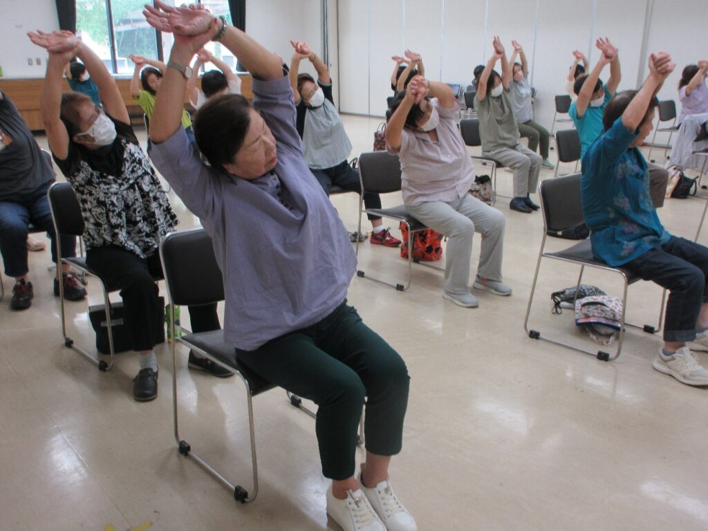 宮城県内でヨガ教室を開いている佐藤美奈さんを講師に、椅子を使ったヨガを体験。部員は呼吸を意識しながら、体をゆっくりとひねり、「ポカポカしてきた」「椅子だと日常で簡単にできるね」と笑い合いました。