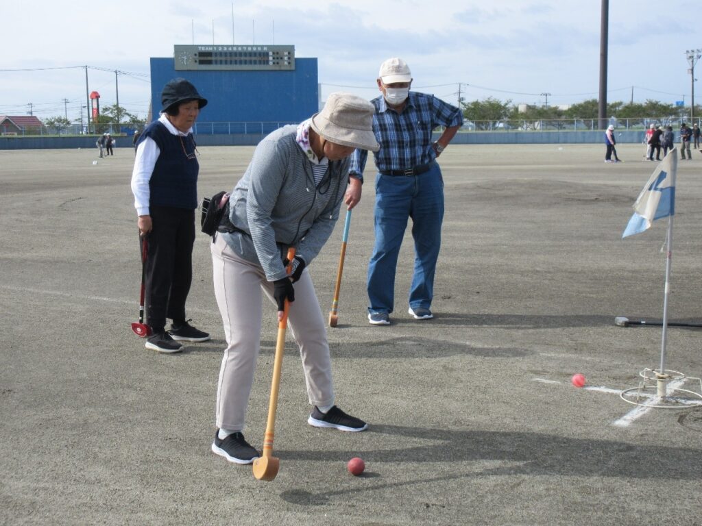 涌谷地域年金友の会は10月9日、涌谷スタジアムでグラウンドゴルフ大会を開催しました。