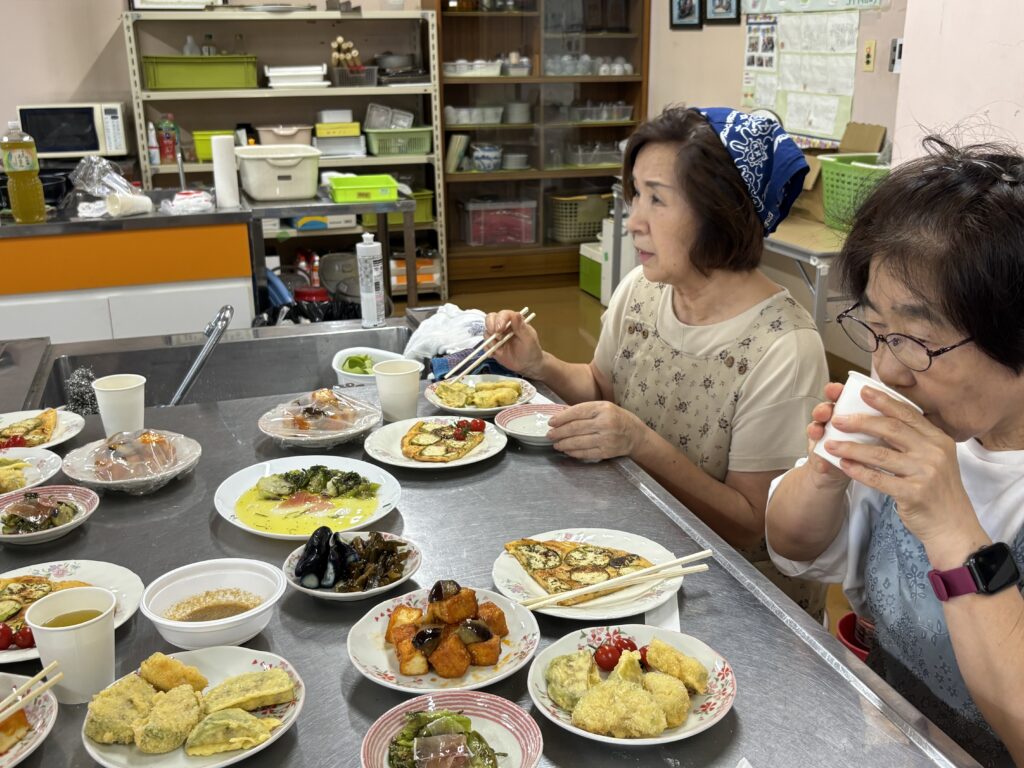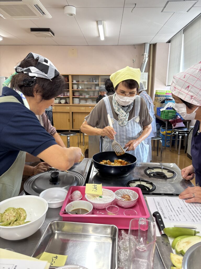 参加者は「ナスが柔らかくておいしい」「こんな食べ方もあるのね」などと話し、楽しんでいる様子でした。