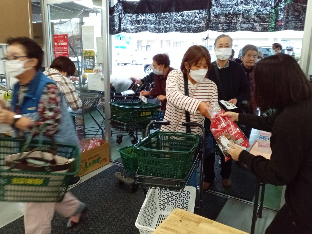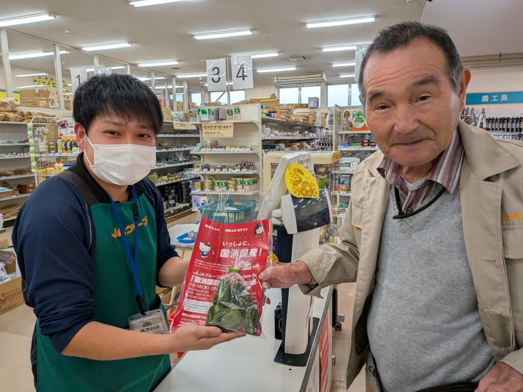 市内から訪れた来店客は「店内に貼られたポスターで『国消国産』を知った。消費者として、今後も安心できる地元の食材を選びたい。もらったお米は栗ご飯にして味わいたい」とほほ笑みました。