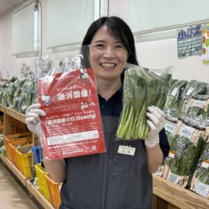 10月16日の「国消国産の日」を前に15日、㈱新みやぎサービスの直売所、元気くん市場仙台南店で「国消国産」を呼び掛ける特別イベントを開催。