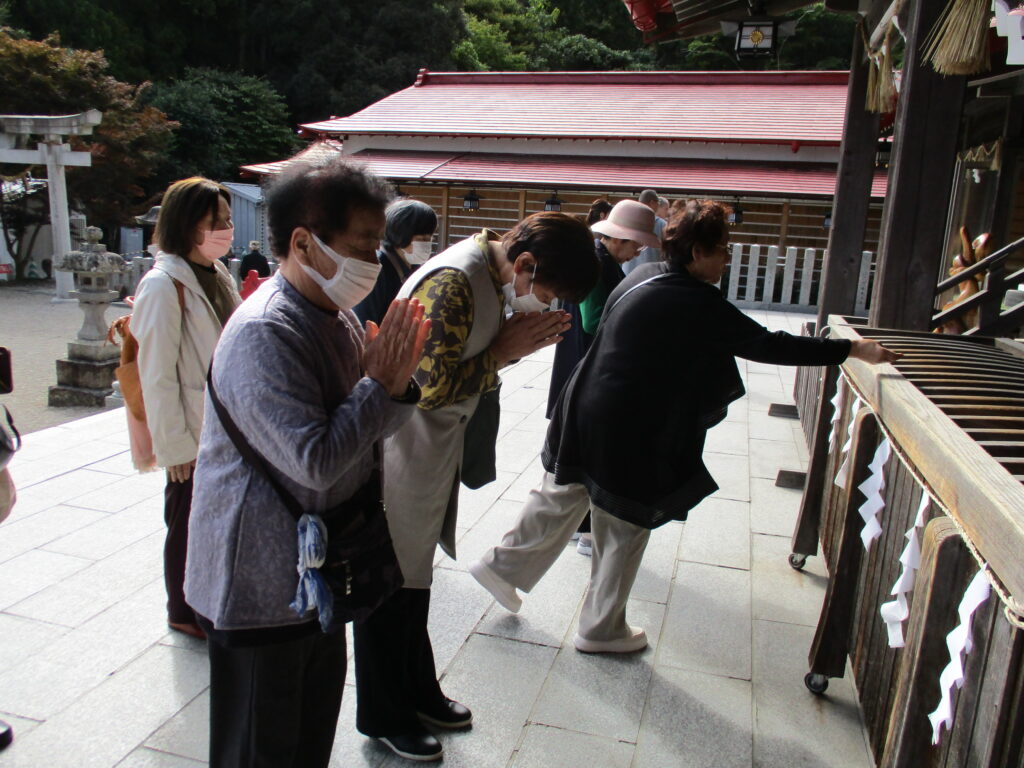 南三陸女性部本吉支部の部員18人は10月23日、支部移動研修を開催しました。今年の干支の「巳」にちなみ、部員から要望のあった岩沼市の金蛇水神社と竹駒神社を参拝し、御朱印や御札をいただきました。 神社を参拝後、仙台市の商業施設「アクアイグニス仙台」で昼食を楽しみ、親睦を深めました。