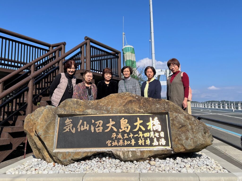あさひな女性部大和支部は10月30日、支部役員移動研修会を開催し、同支部の役員6人が気仙沼市を訪れました。 気仙沼大島大橋を歩いて渡り、展望台の前で記念撮影をしたほか、旅館「明海荘」では、女将の村上かよさんが語り部として、震災当時にお互いに助け合い、困難を乗り越えた経験談や、被災後に出会った全国各地の人々とのエピソードを語りました。当時出会った人々との交流が現在も続いていることを知り、役員は感銘を受けました。