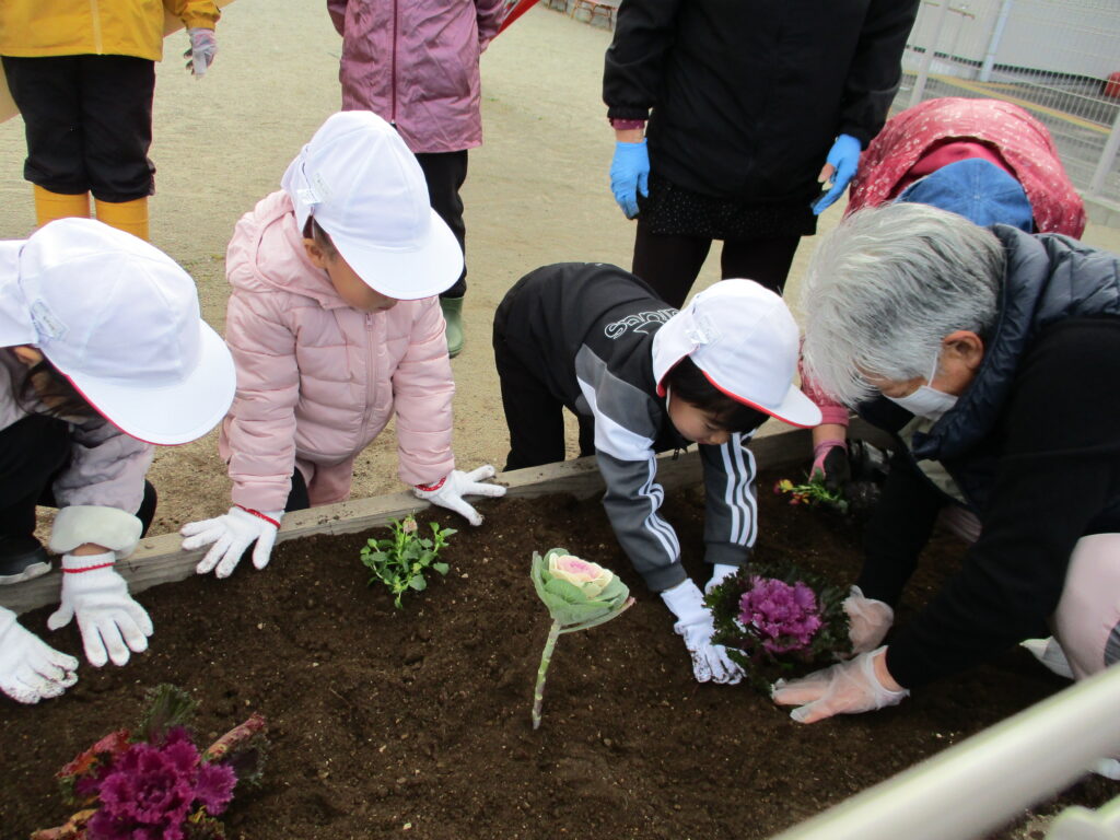 JA新みやぎ南三陸女性部歌津支部は11月28日、南三陸町立伊里前保育所で花壇に花苗の植栽を行い、部員6人が参加しました。 女性部員と園児が交流しながら、ハボタンやパンジーを花壇に植えたほか、同支部からシクラメンの鉢を同保育所に贈りました。 山内育子支部長は「毎日お水をあげると、きれいなお花が咲きます。皆さんで大切に育ててください」と話しました。
