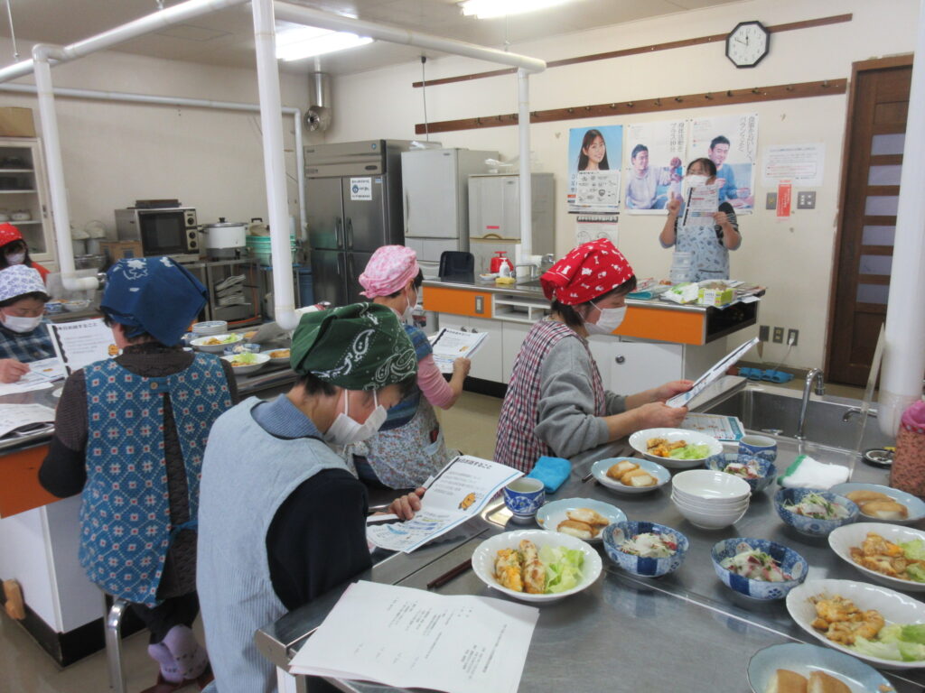 栄養士の佐藤直子さんを講師に招き、『家の光』2024年11月号掲載の「鶏ささみのチーズピカタ」と2025年1月号に掲載された「餅いなり」のほか高血圧予防となる減塩メニュー4品を手際よく調理し、試食しました。