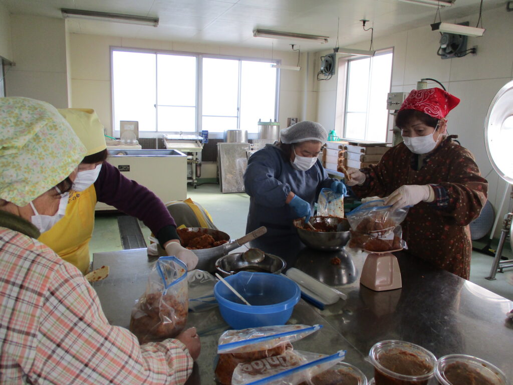 JA新みやぎみどりのヘルプふれ愛グループ松山支部ポピーの会は12月5日、大崎市の松山農産加工室で手作りしたみそを袋詰め作業を行い、会員9人が参加しました。 手作りしたみそは、地域の75歳以上の一人暮らし世帯へクリスマスプレゼントとして配付します。 遠藤敬子会長は「会員が愛情込めて作ったみそを食べて、いつまでも健康に過ごしてほしい」と笑顔で話しました。