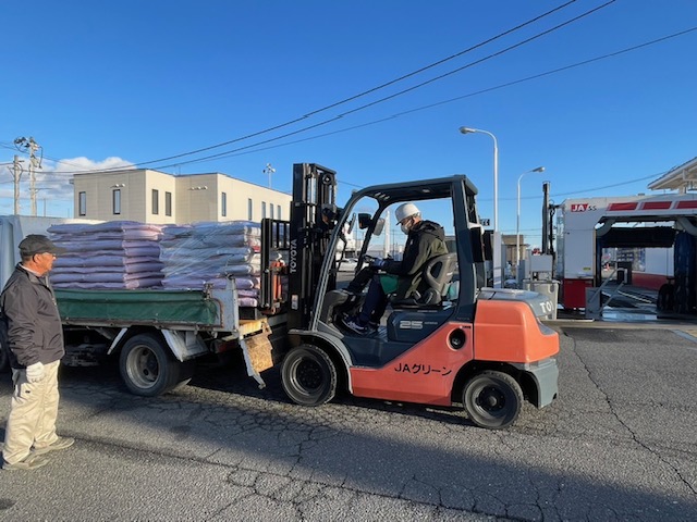 JAグリーンあさひなでは12月1日から、令和8年用水稲用配合肥料の自己引き取りが始まりました。12月中に自己引き取りを希望した組合員へ4413袋を順次引き渡しします。
