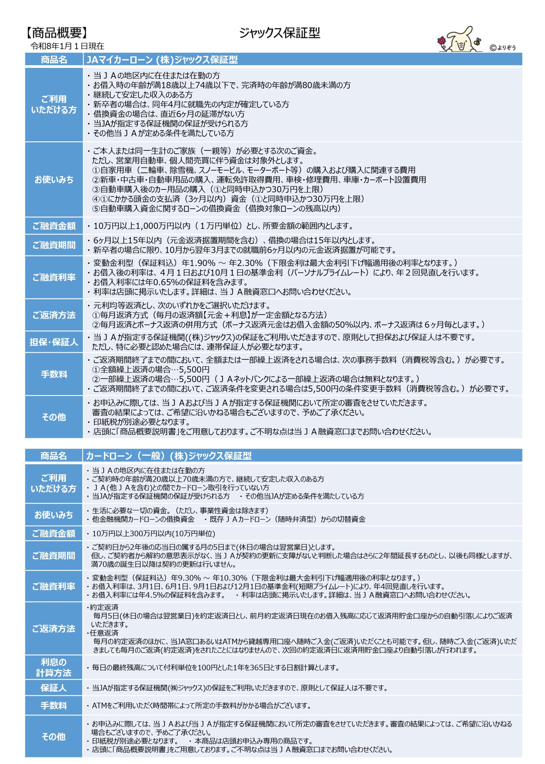 【ジャックス保証】JAマイカーローン・JAカードローンのご案内