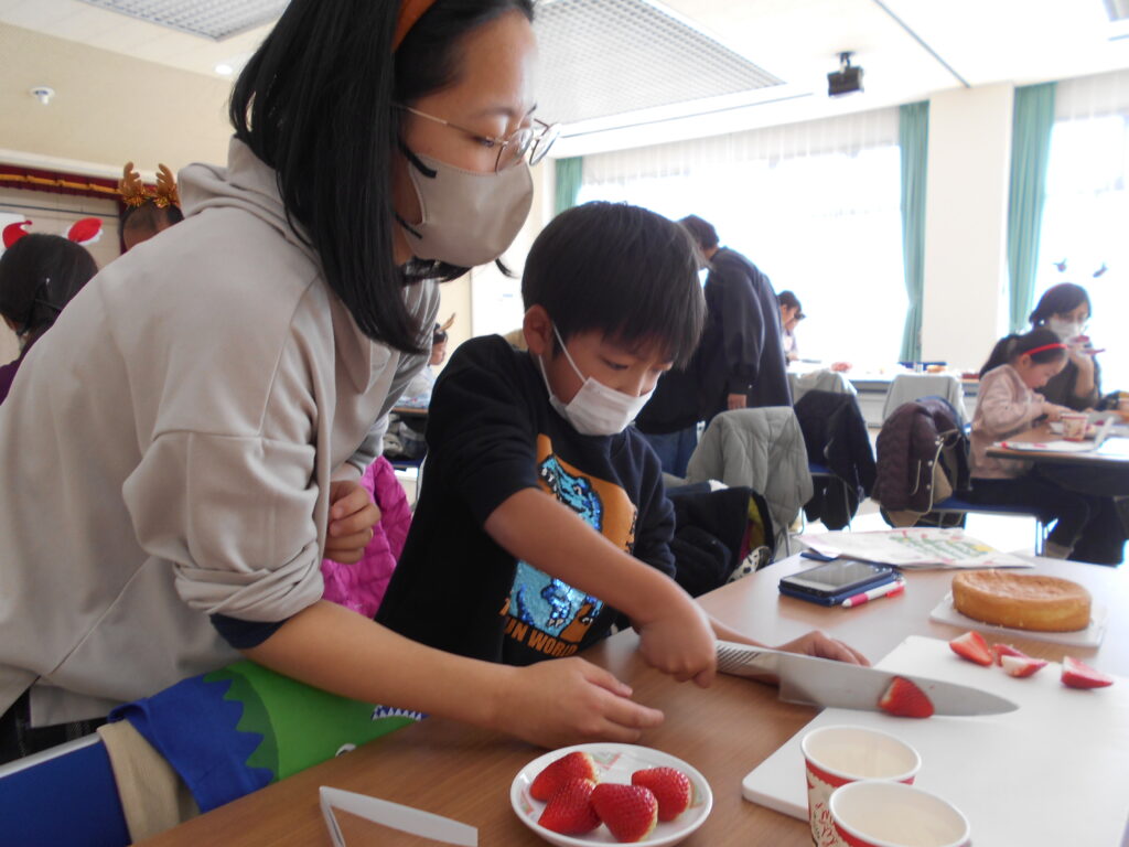 「親子クッキング教室」でクリスマスケーキ作り