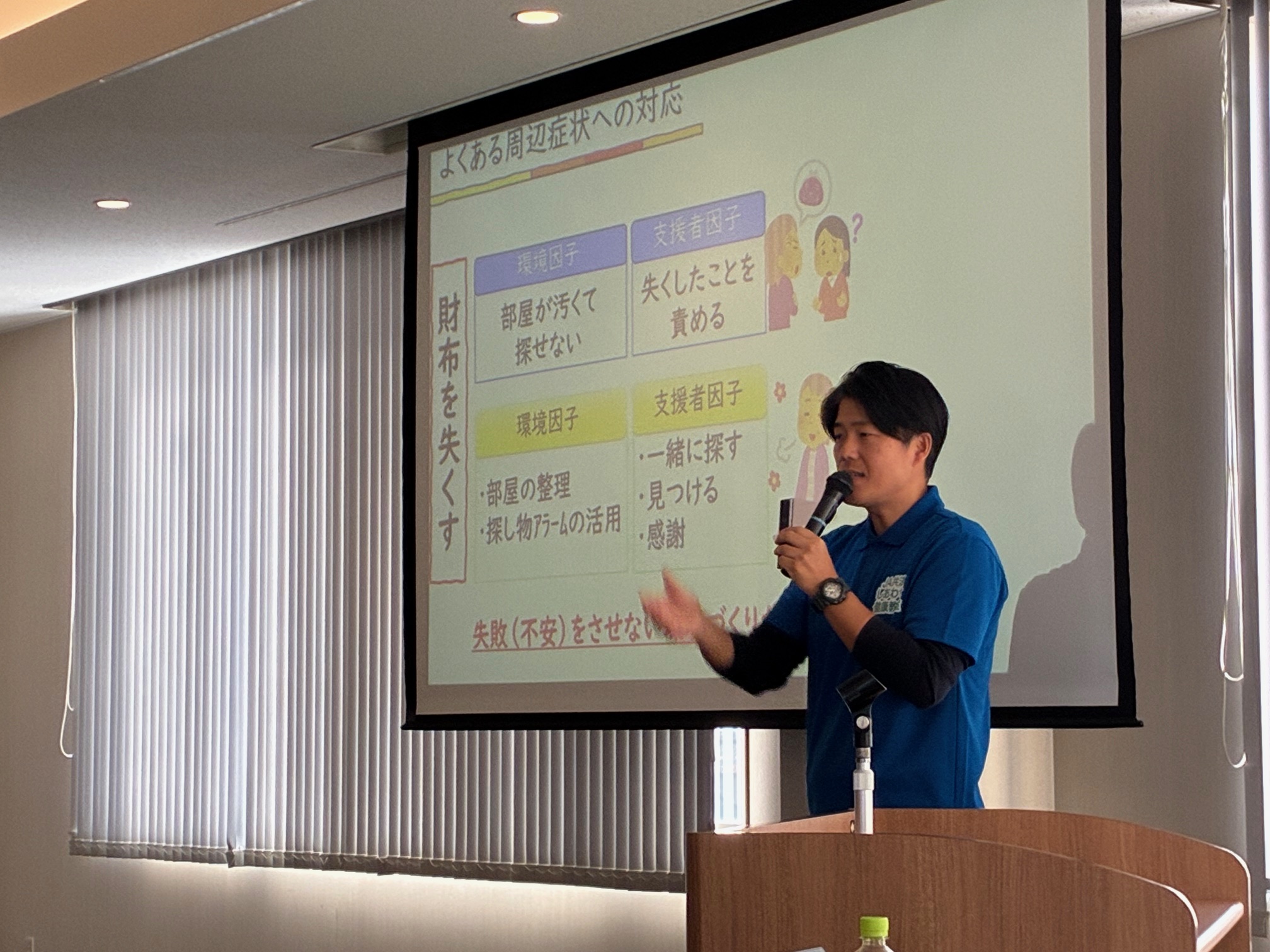 認知症の有病率は減少傾向にあるものの、軽度認知障害は増加しており、生活習慣の改善や社会参加の重要性が強調されました。実践を交えた歩行介助の研修や、活発な質問コーナーもあり、参加者の意欲が高まる有意義な研修となりました。
