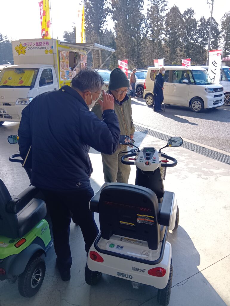 シニアカーを見学する来場者