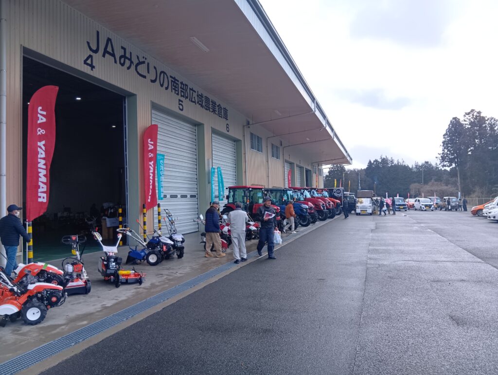 みどりの地区は2月5日と6日の2日間、みどりの南部広域農業倉庫(大崎市鹿島台)で新春展示会を開催し、400人以上の組合員や利用者が来場しました。